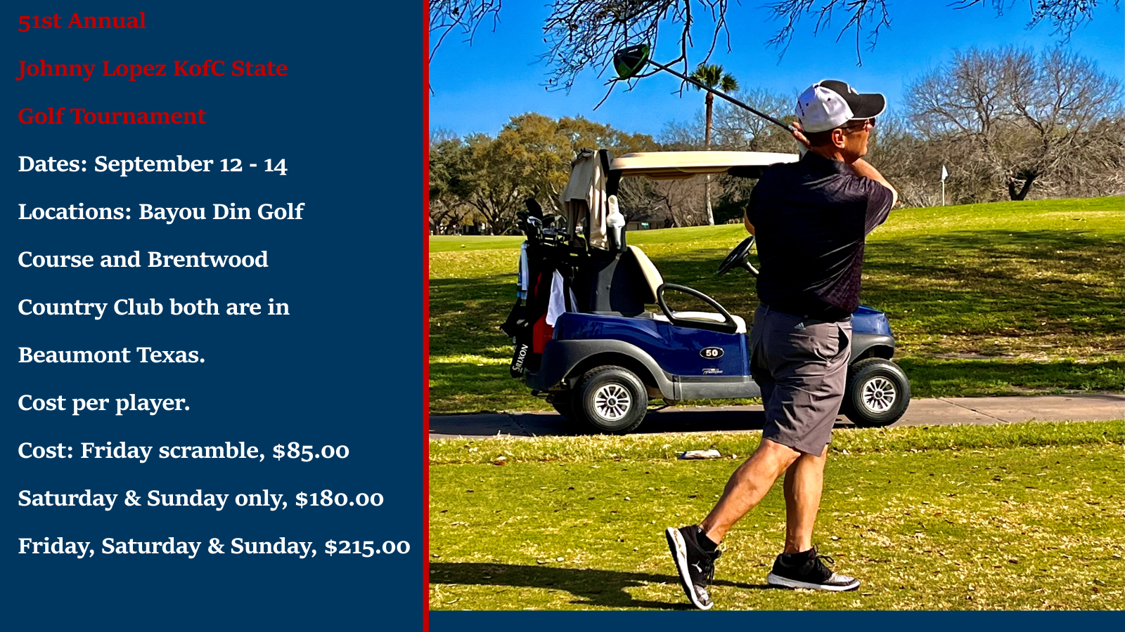 The Friday Scramble will be held at Brentwood Country Club in Beaumont.