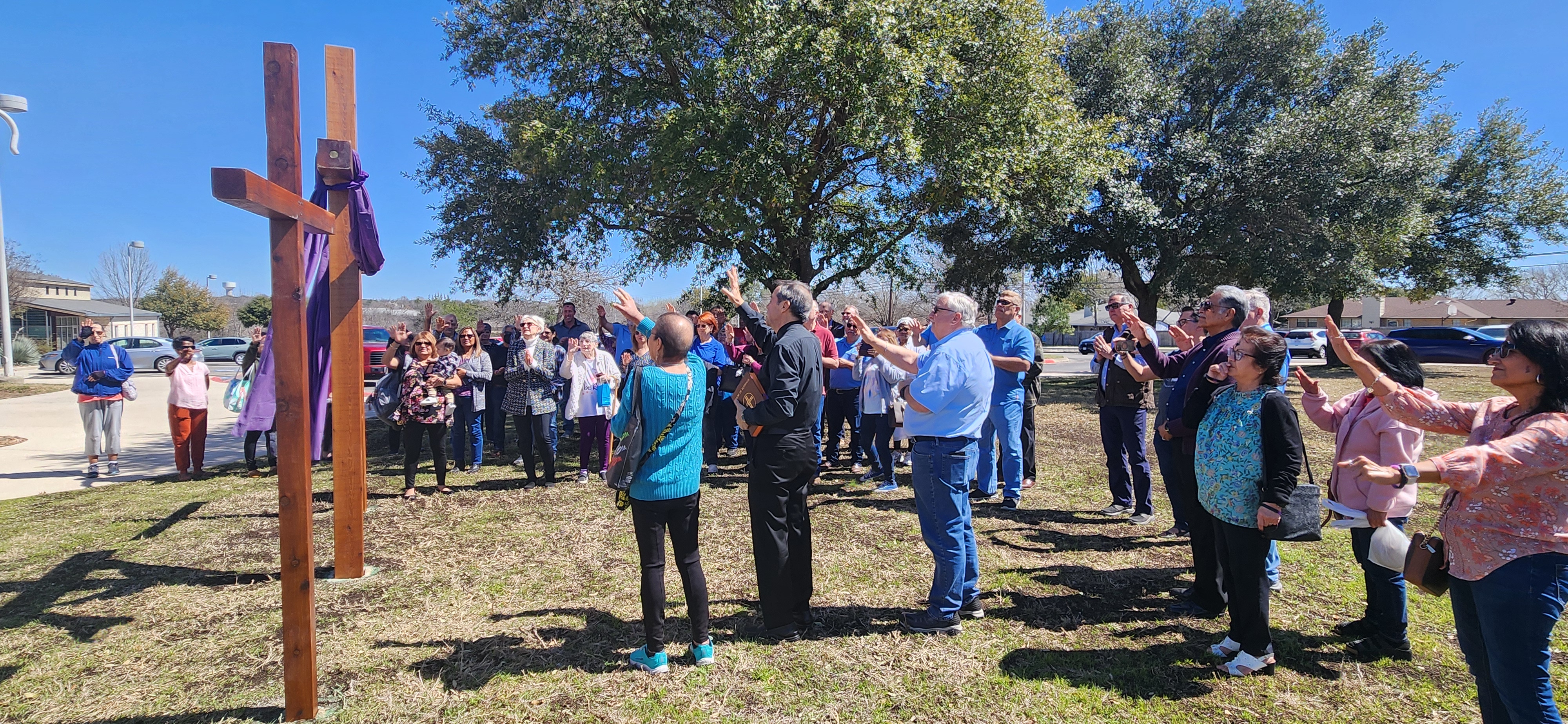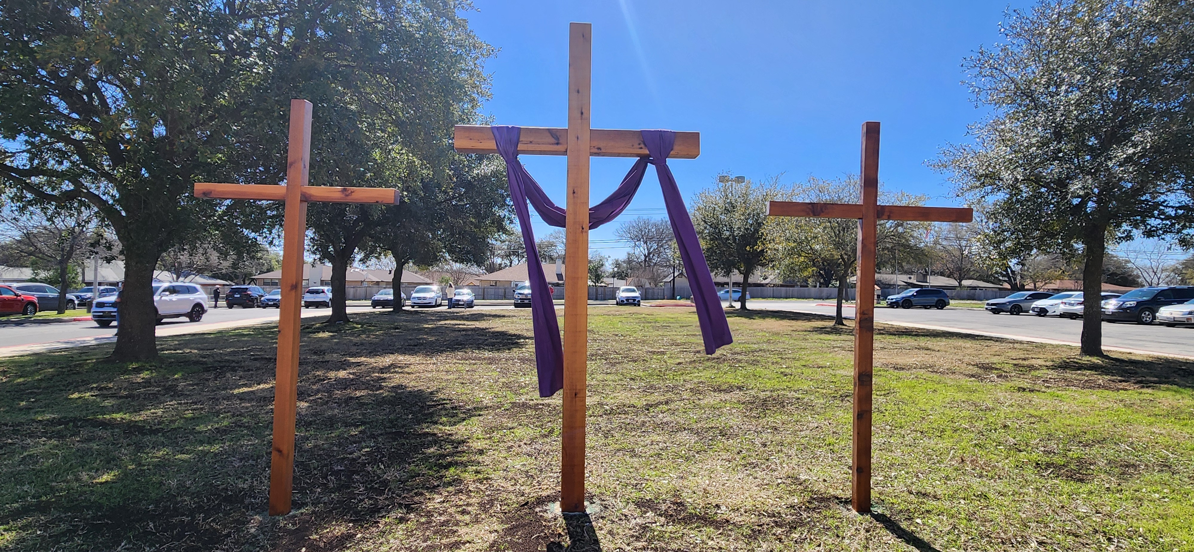 Easter seasons by presenting it with 3 new wooden crosses for display out front of