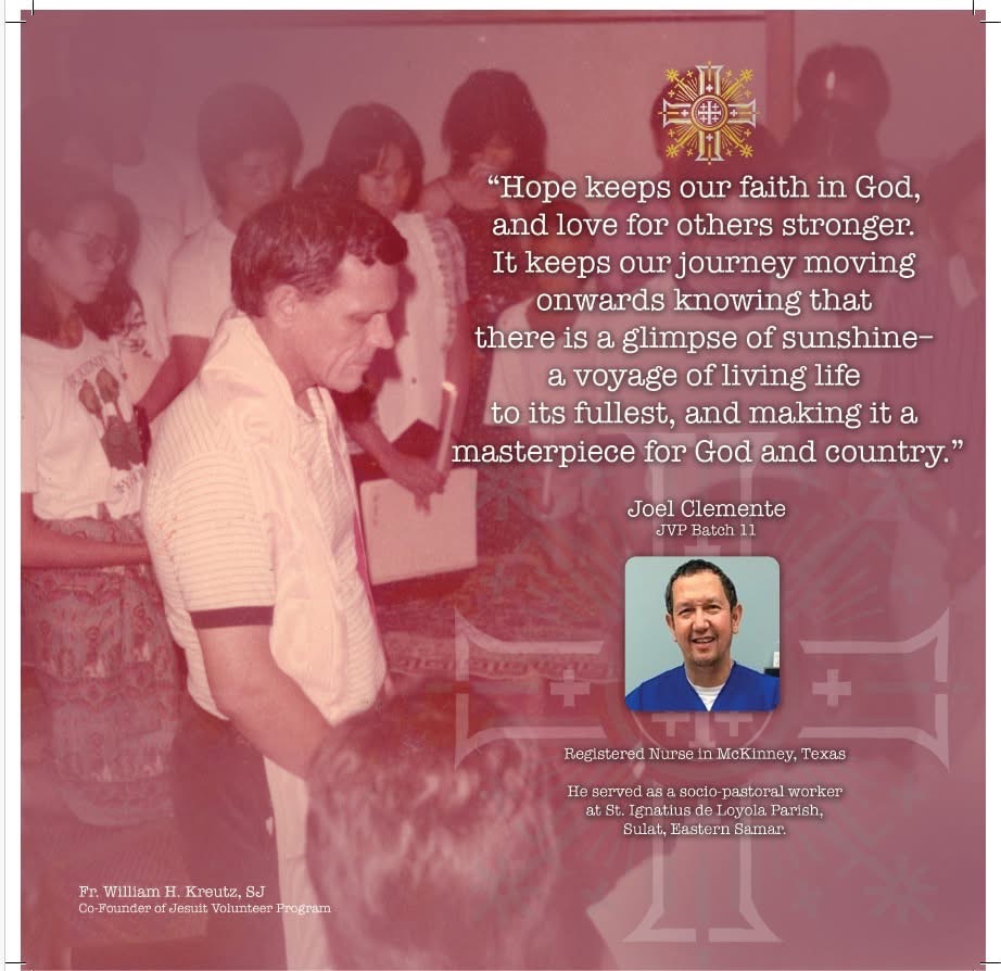 coming from different batches, were carefully endorsed and selected by the JVP central board, and the research committee of the Jesuit Communications Foundation, Inc., based in Ateneo De Manila University, Philippines, to share their photos from their mission year, and their personal quotation about hope.